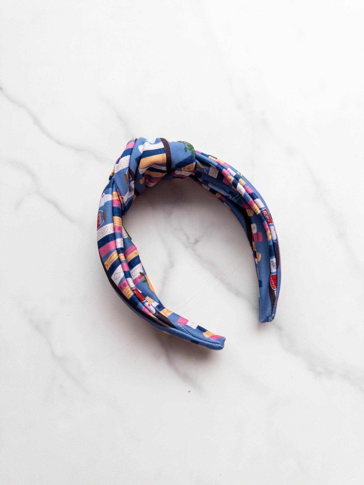 Adult top knot headband. Fabric is double brushed polyester and there is a plastic headband inside. Fits adults best but can fit larger children as well.