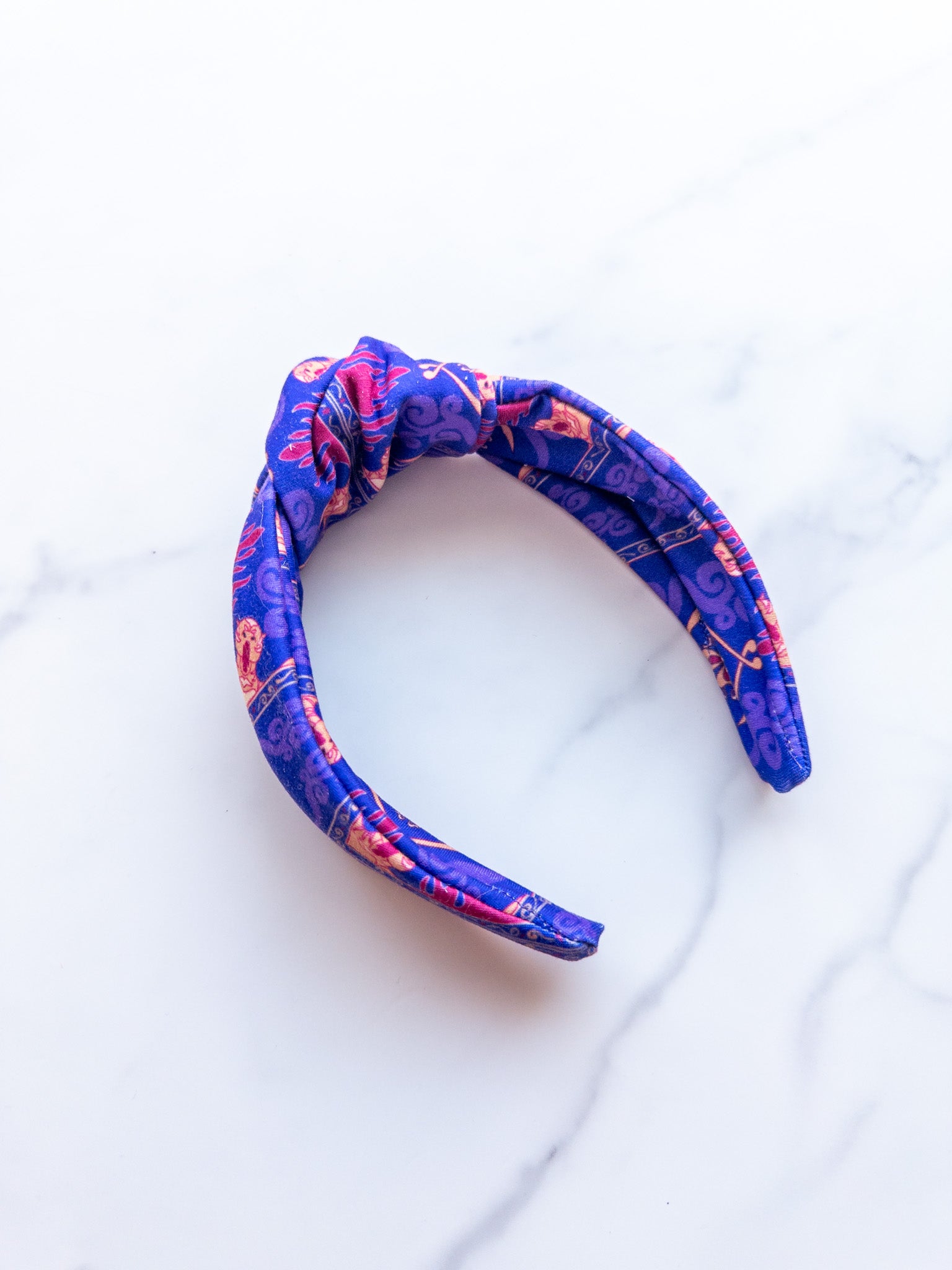 Adult top knot headband. Fabric is double brushed polyester and there is a plastic headband inside. Fits adults best but can fit larger children as well.