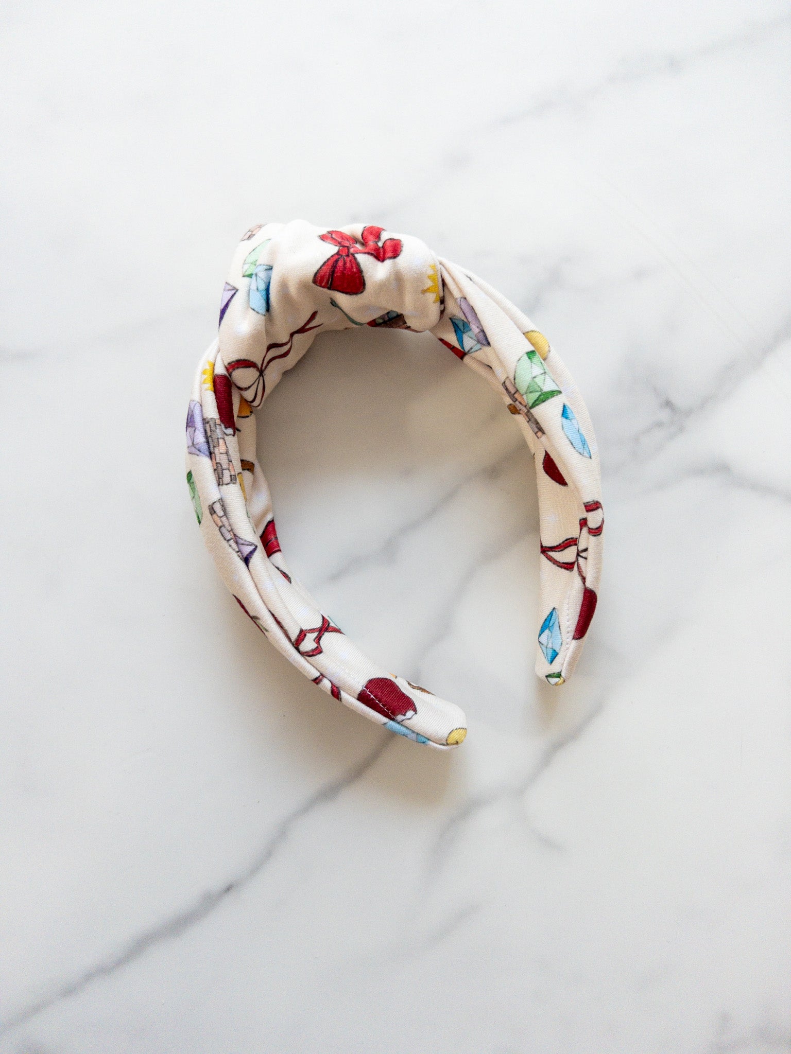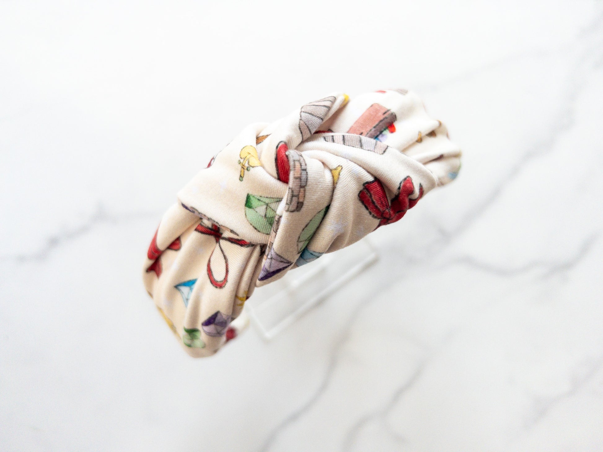 Adult top knot headband. Fabric is double brushed polyester and there is a plastic headband inside. Fits adults best but can fit larger children as well.