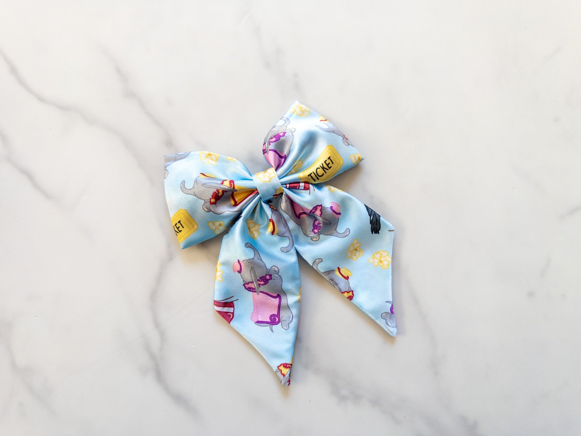 Bow is about 5.5 inches wide with tails. Back has a 3 inch barrette.