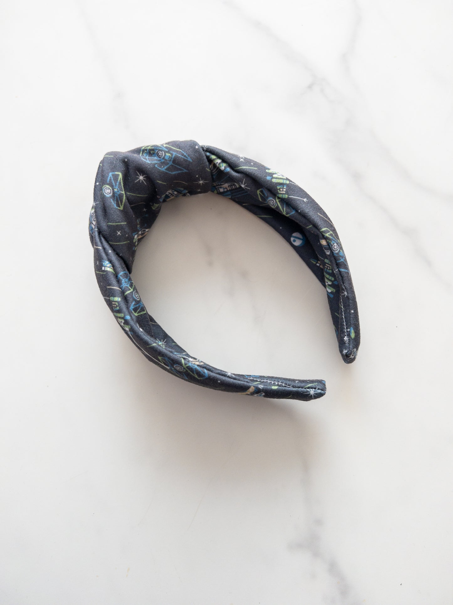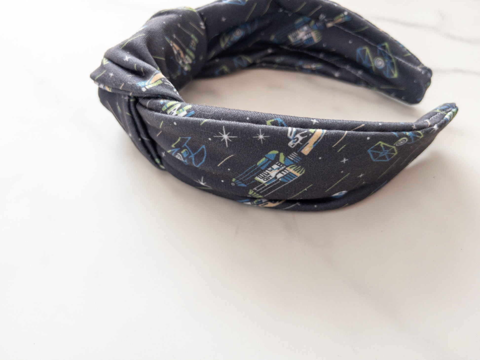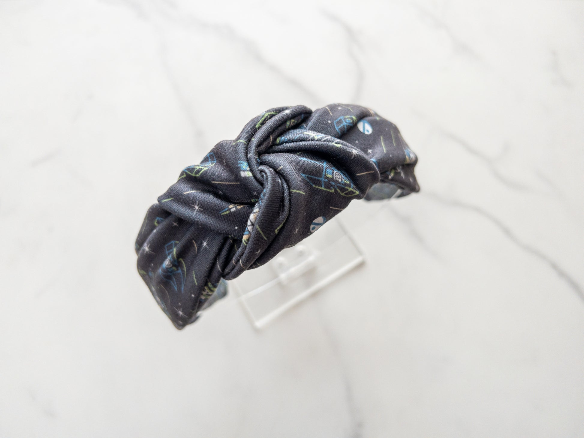 Adult top knot headband. Fabric is a double brushed polyester material and there is a plastic headband inside. Fits adults best but can fit larger children as well.