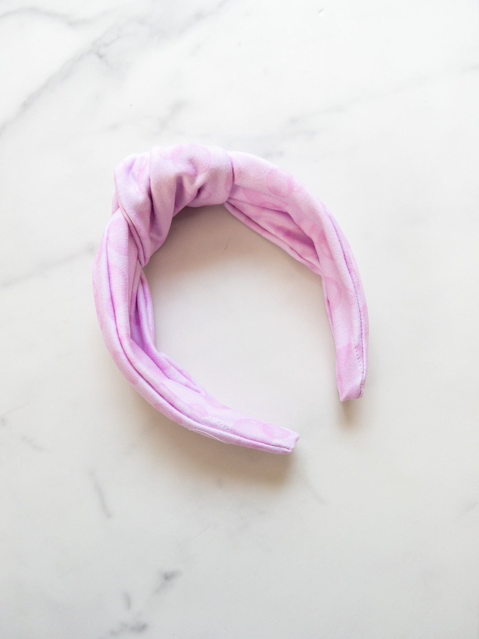 Adult top knot headband. Fabric is double brushed polyester and there is a plastic headband inside. Fits adults best but can fit larger children as well.