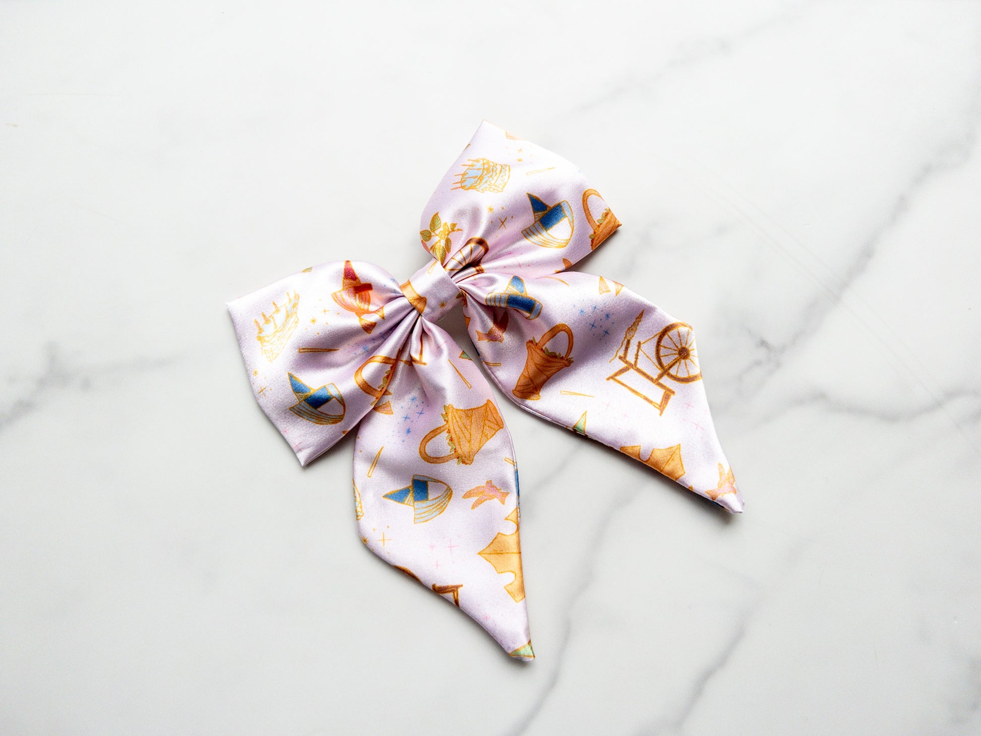 Bow is about 5.5 inches wide with tails. Back has a 3 inch barrette.