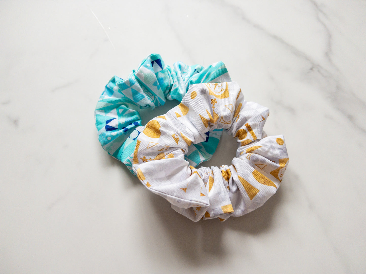 One (1) regular scrunchie. All Fabrics are cotton to cotton blend. Placement of characters may vary on individual scrunchies.