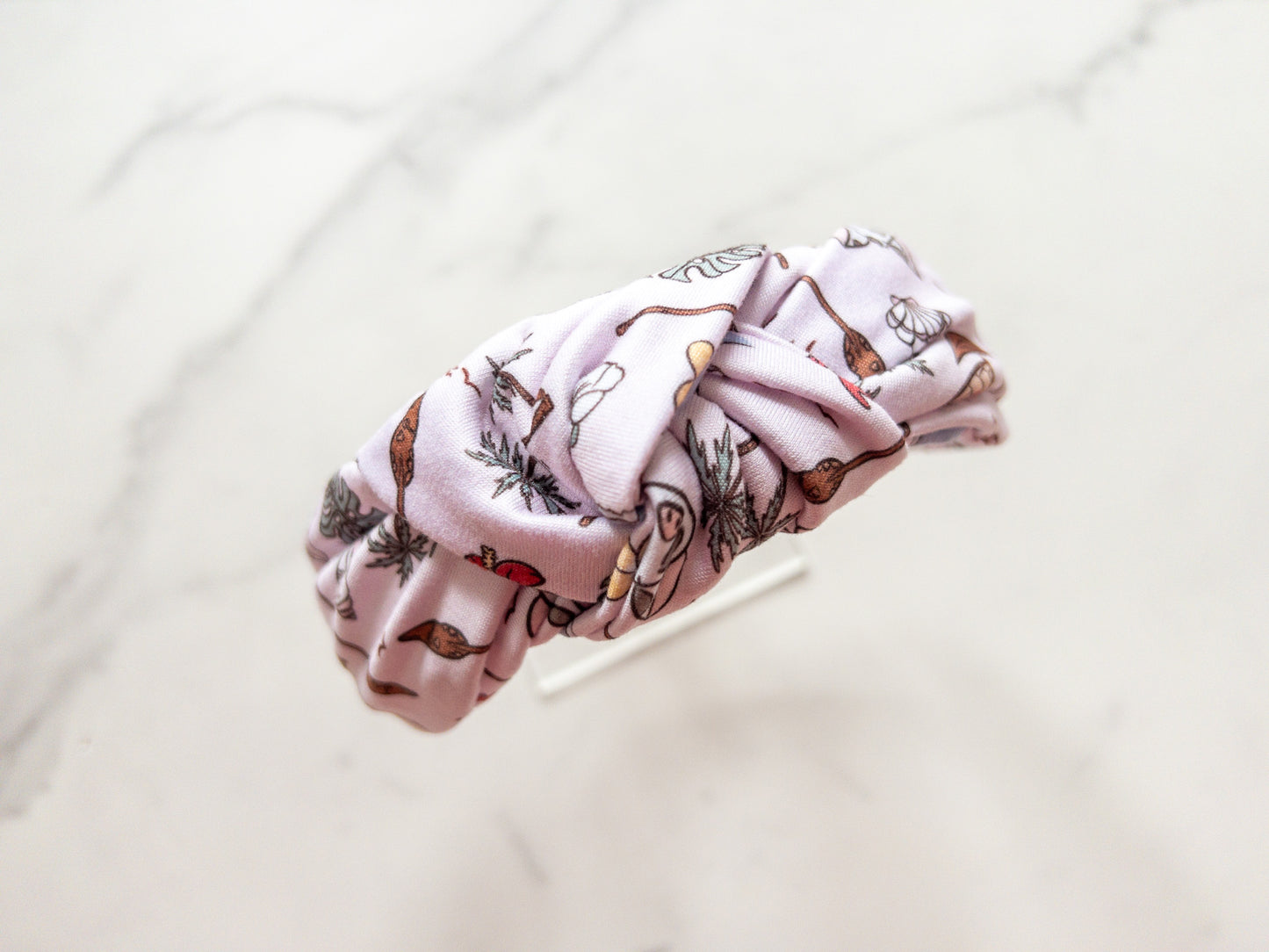 Adult top knot headband. Fabric is a double brushed polyester material and there is a plastic headband inside. Fits adults best but can fit larger children as well.