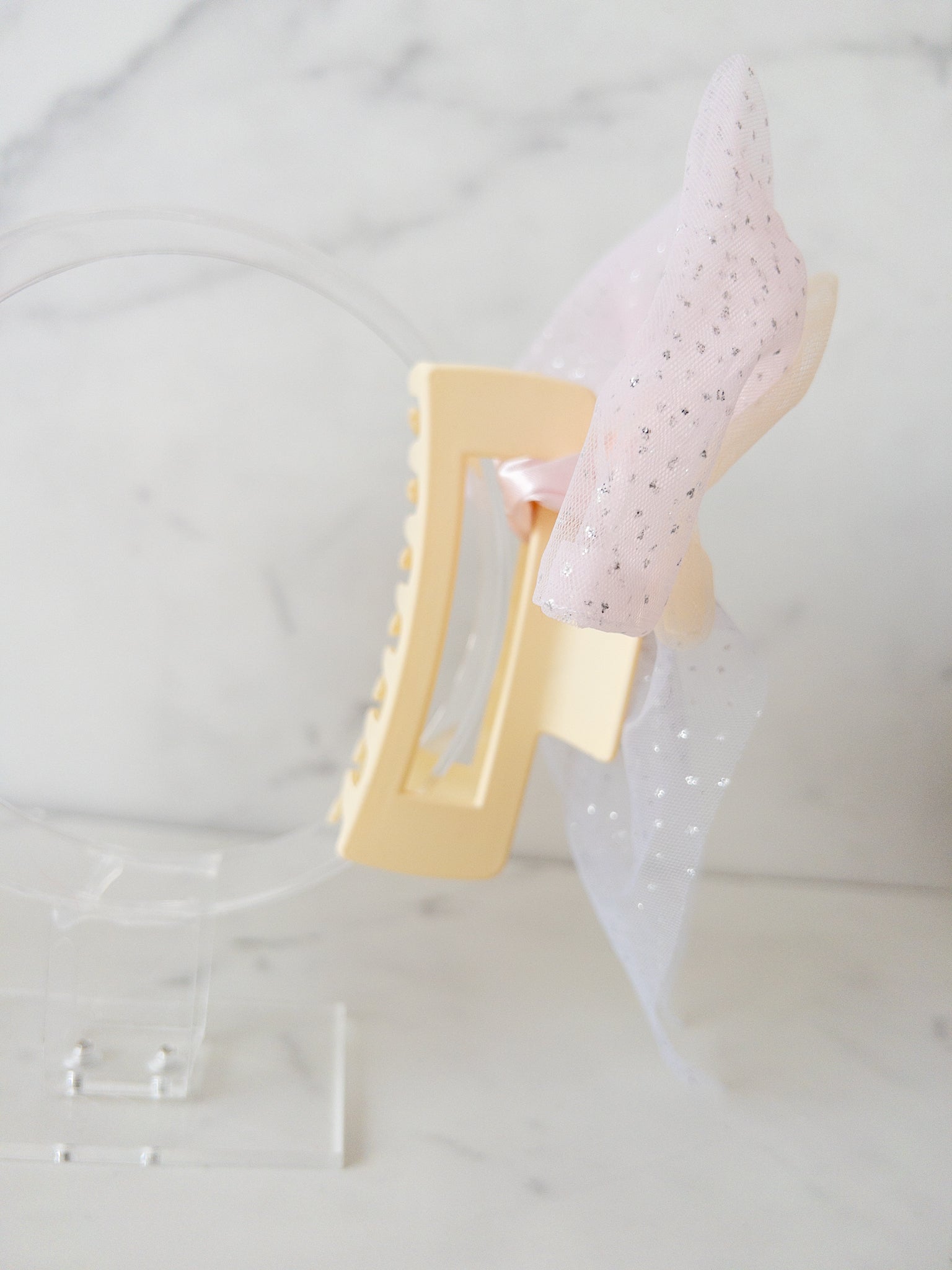 Your favorite pixie dust bows are now available on a claw clip. Whether you need a cute bag accessory or to get your hair up on a hot magical day, these bow claw clips are perfect!