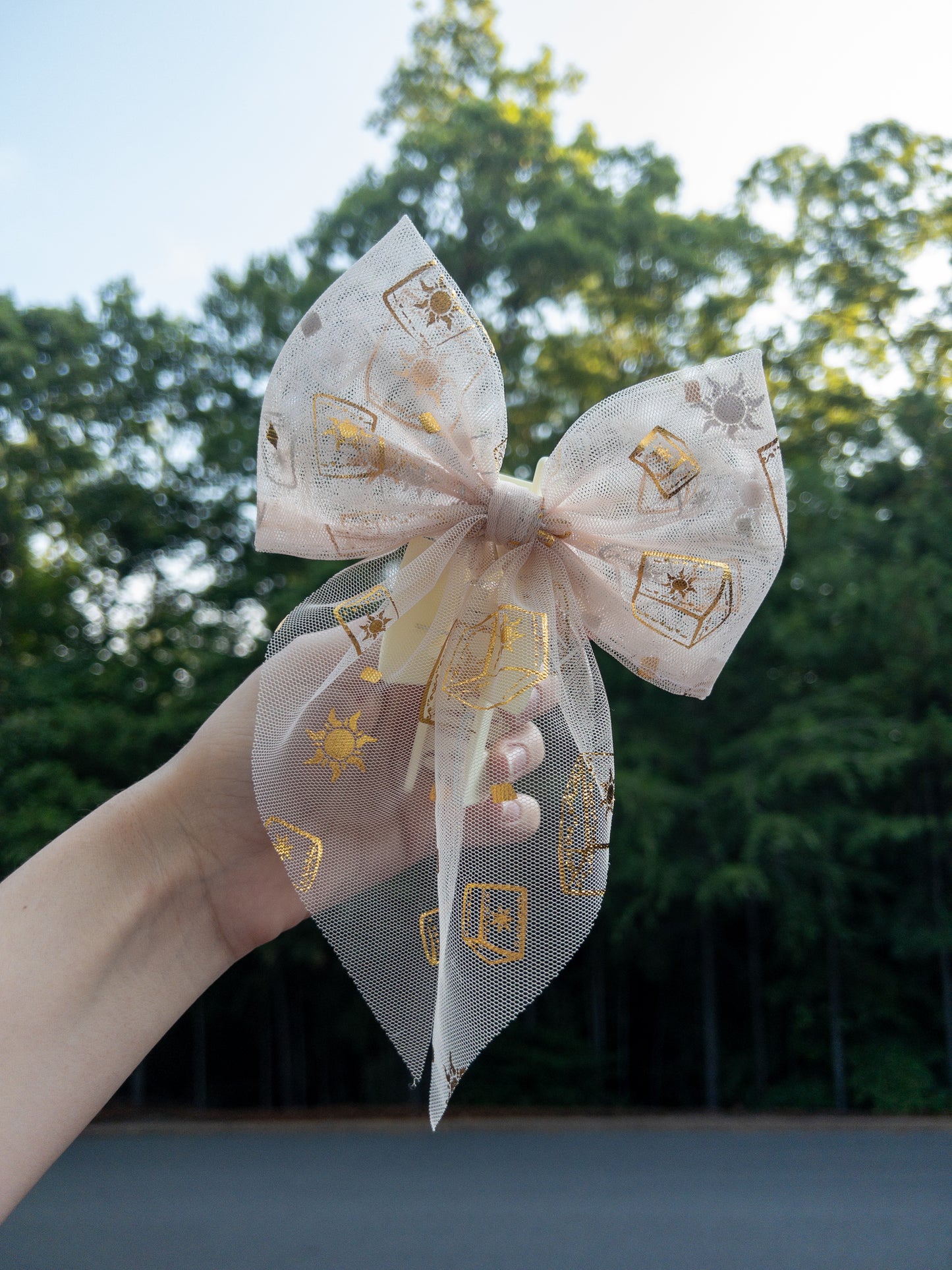 Your favorite bows are now available on a claw clip. Whether you need a cute bag accessory or to get your hair up on a hot magical day, these bow claw clips are perfect!