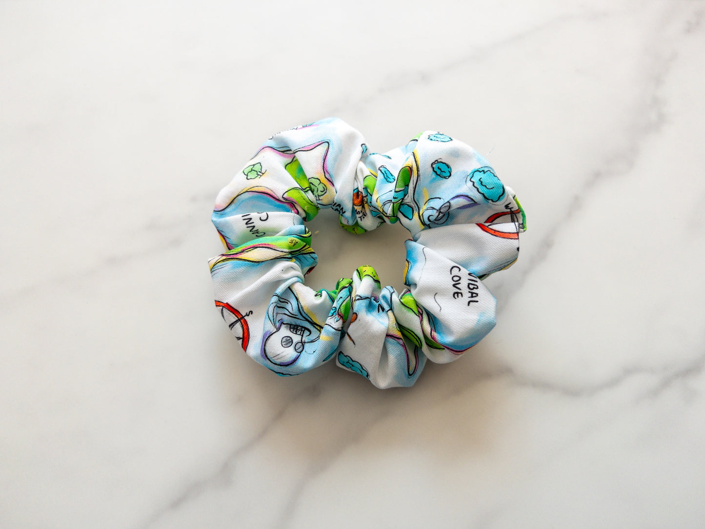 One (1) regular scrunchie. All Fabrics are cotton to cotton blend. Placement of characters may vary on individual scrunchies.