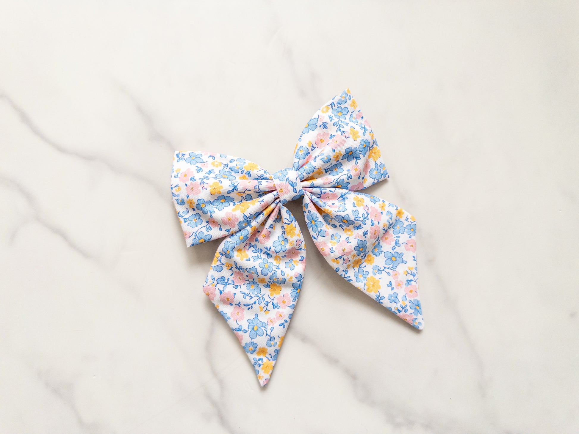 Bow is about 5.5 inches wide with tails. Back has a 3 inch barrette or 3 inch alligator clip!