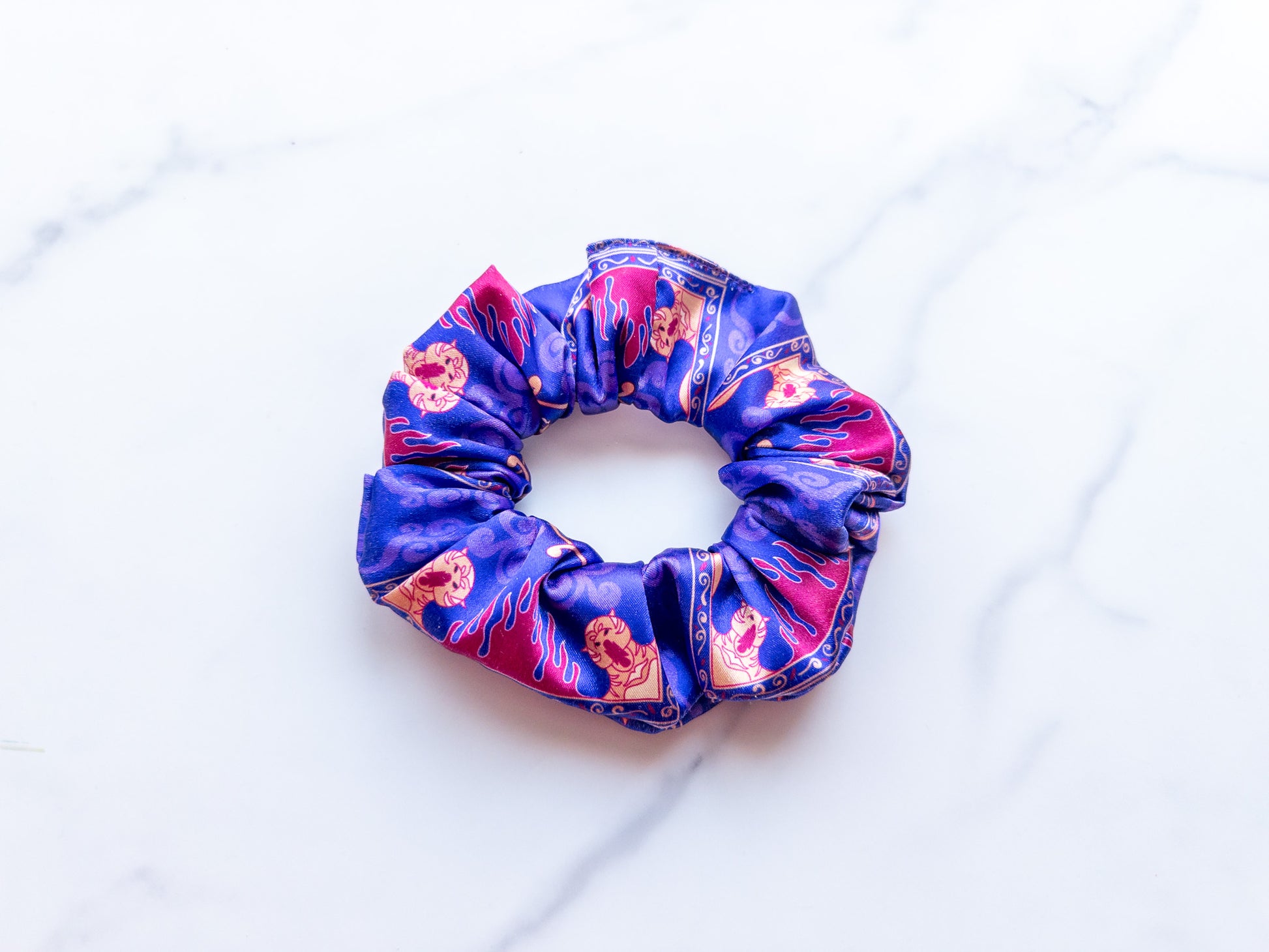 One (1) satin regular scrunchie. Placement of characters may vary on individual scrunchies.