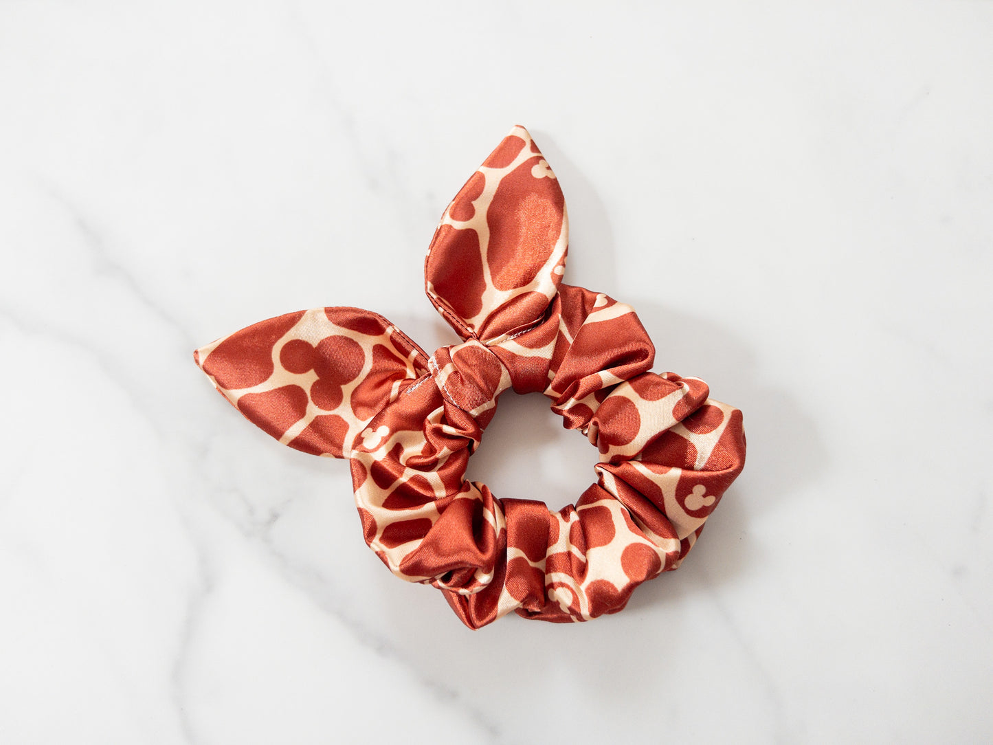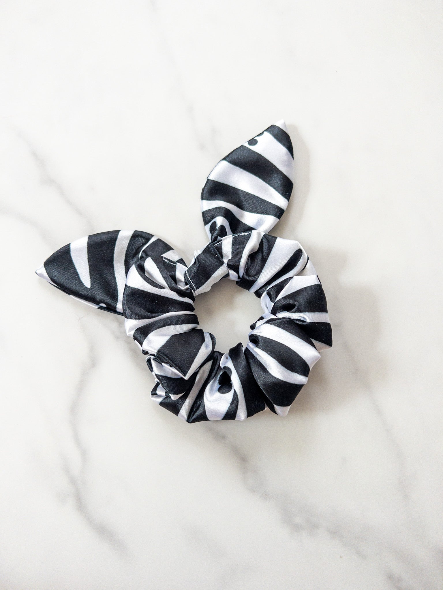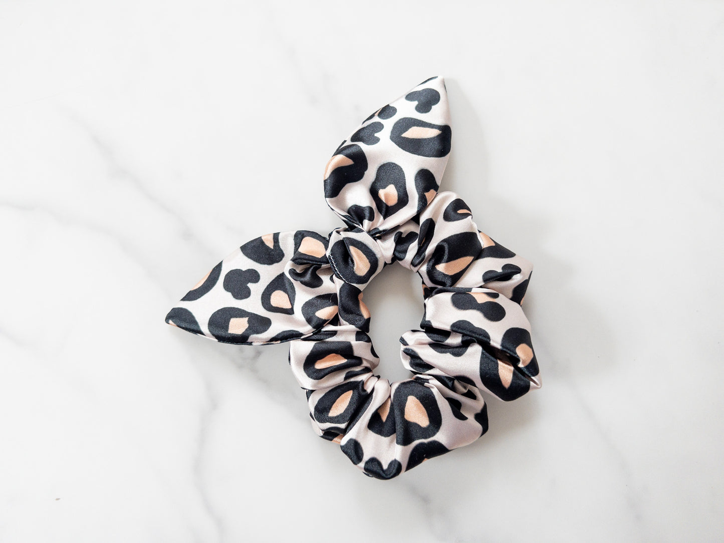 One (1) satin scrunchie with bow. Characters will vary on each individual scrunchie.