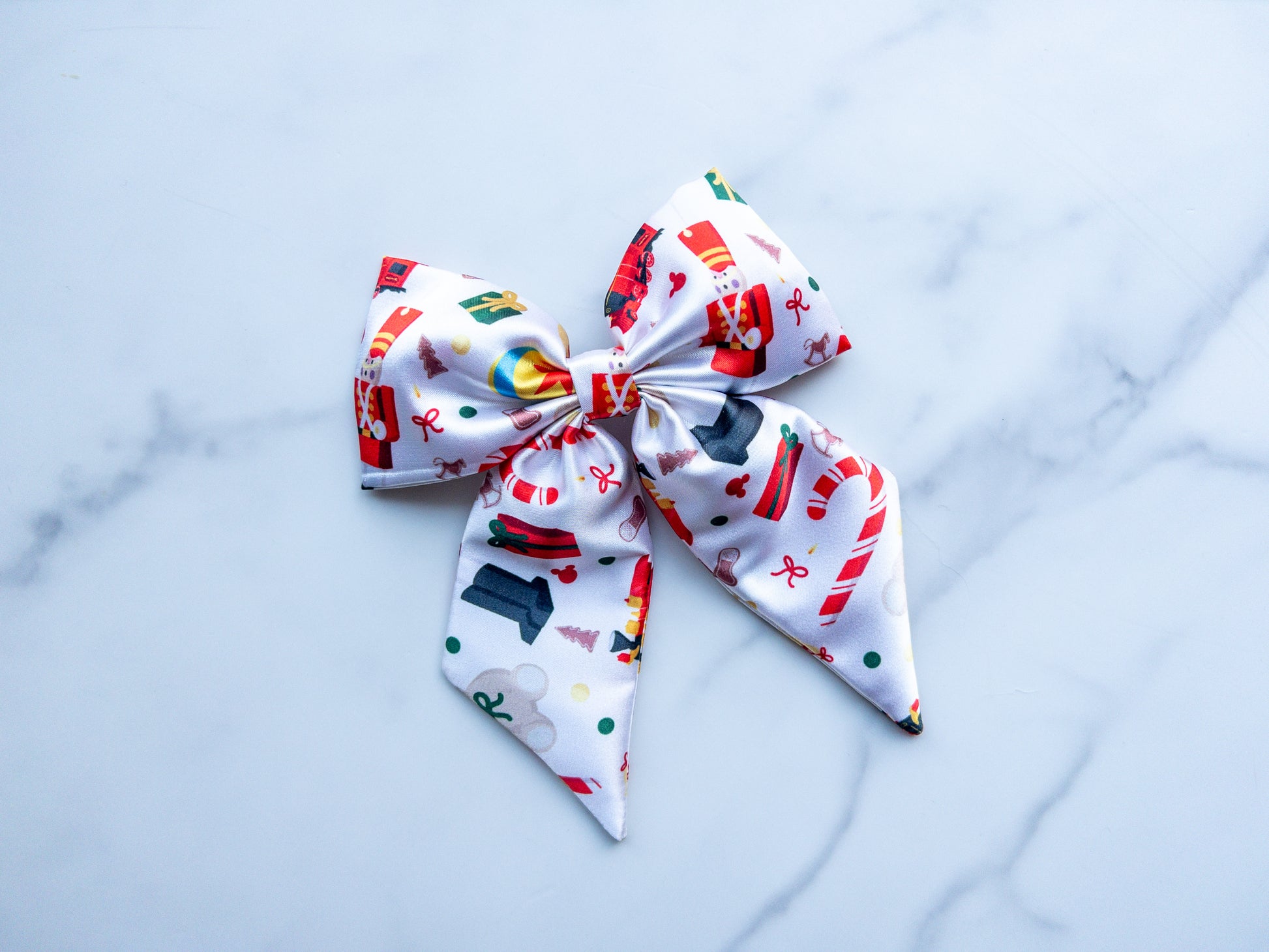 Bow is about 5.5 inches wide with tails. Back has a 3 inch barrette.