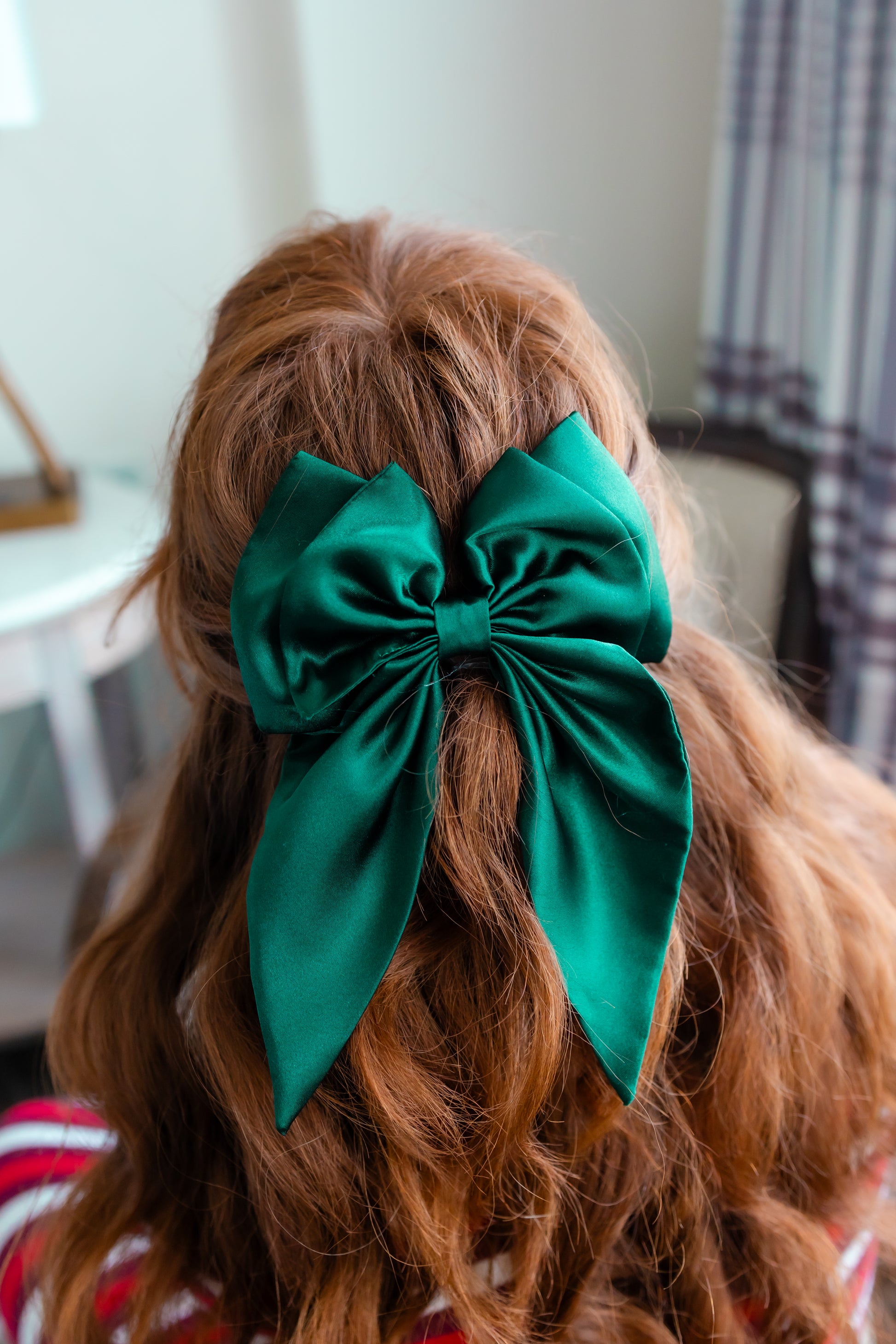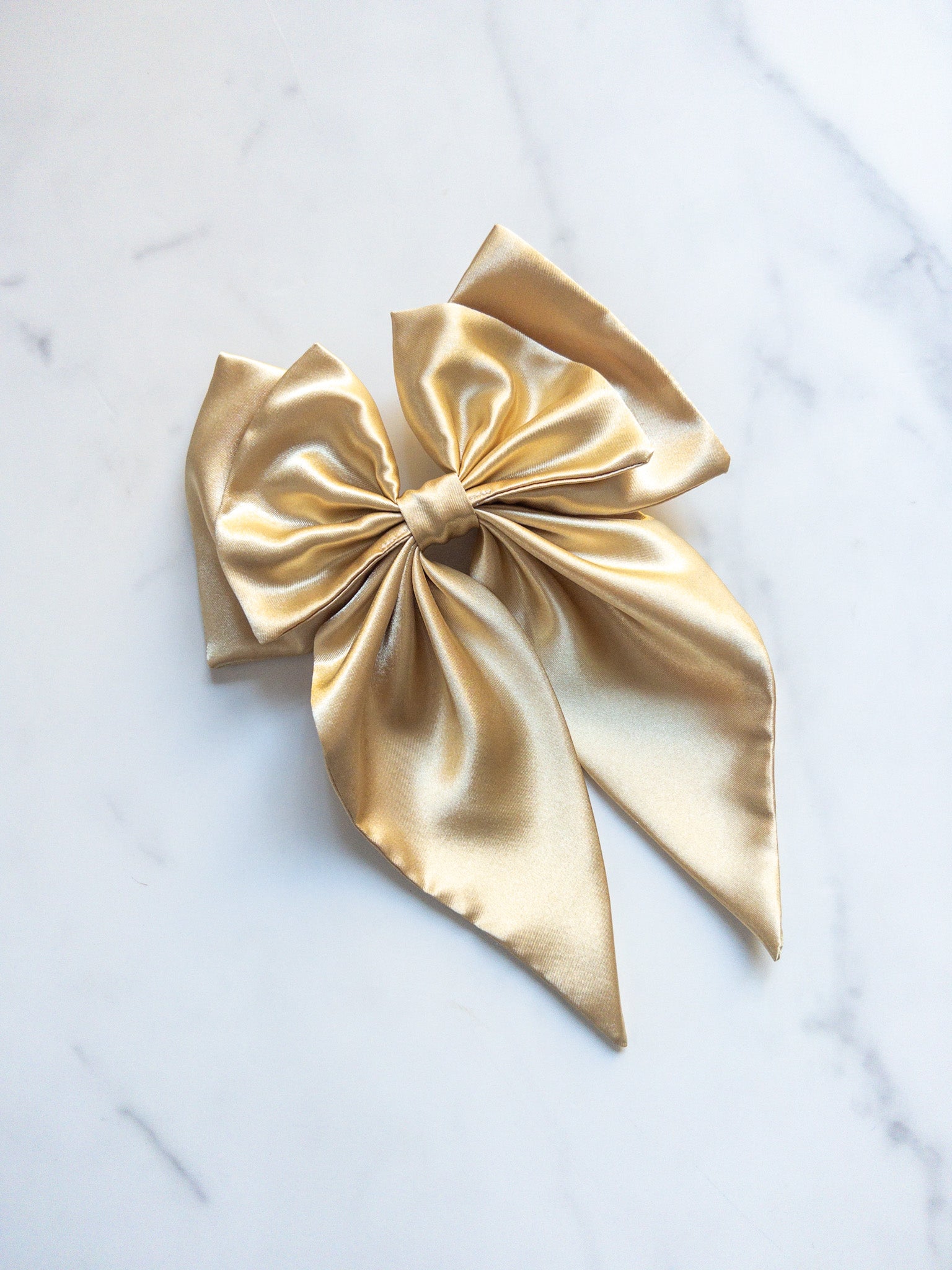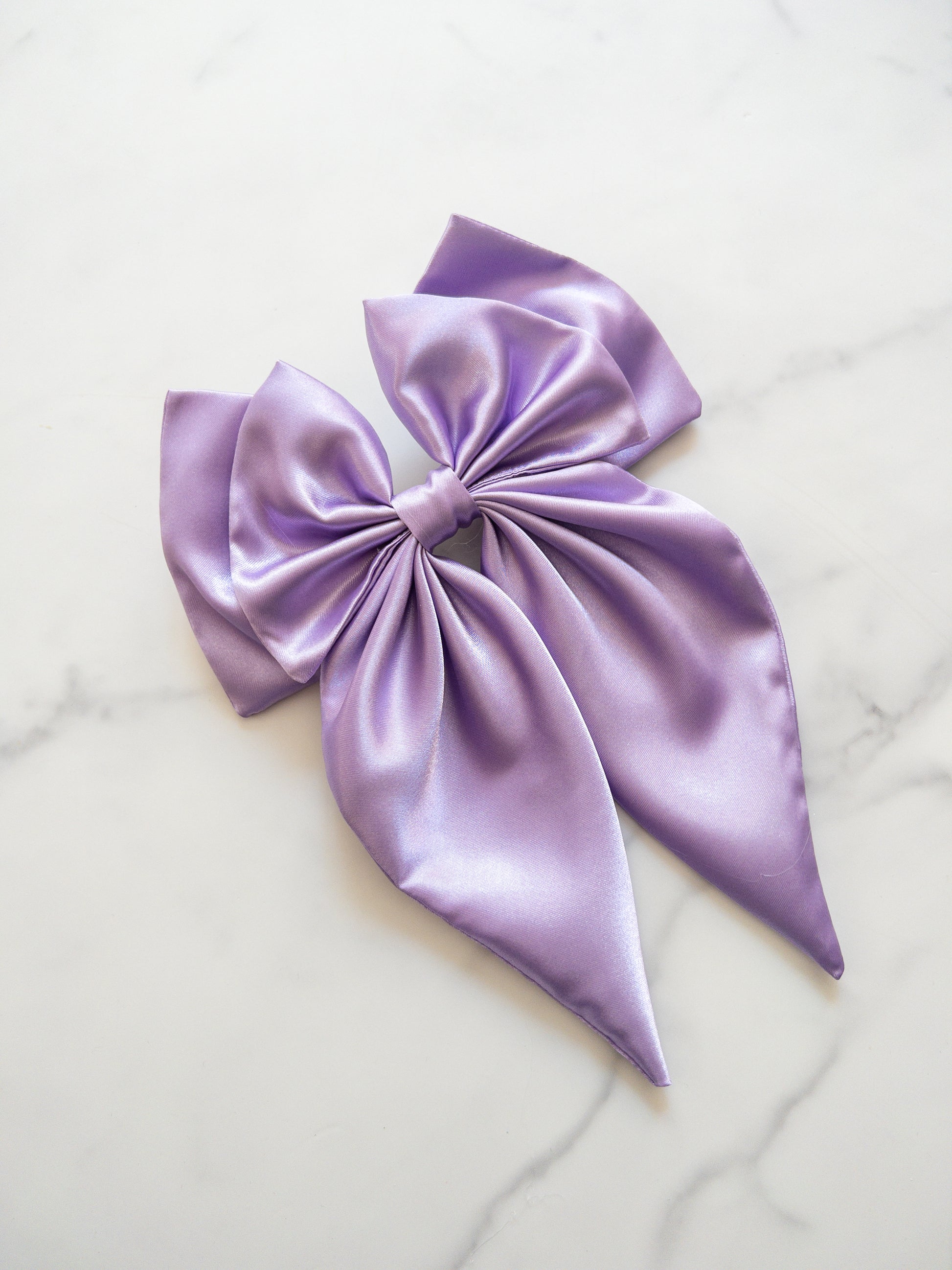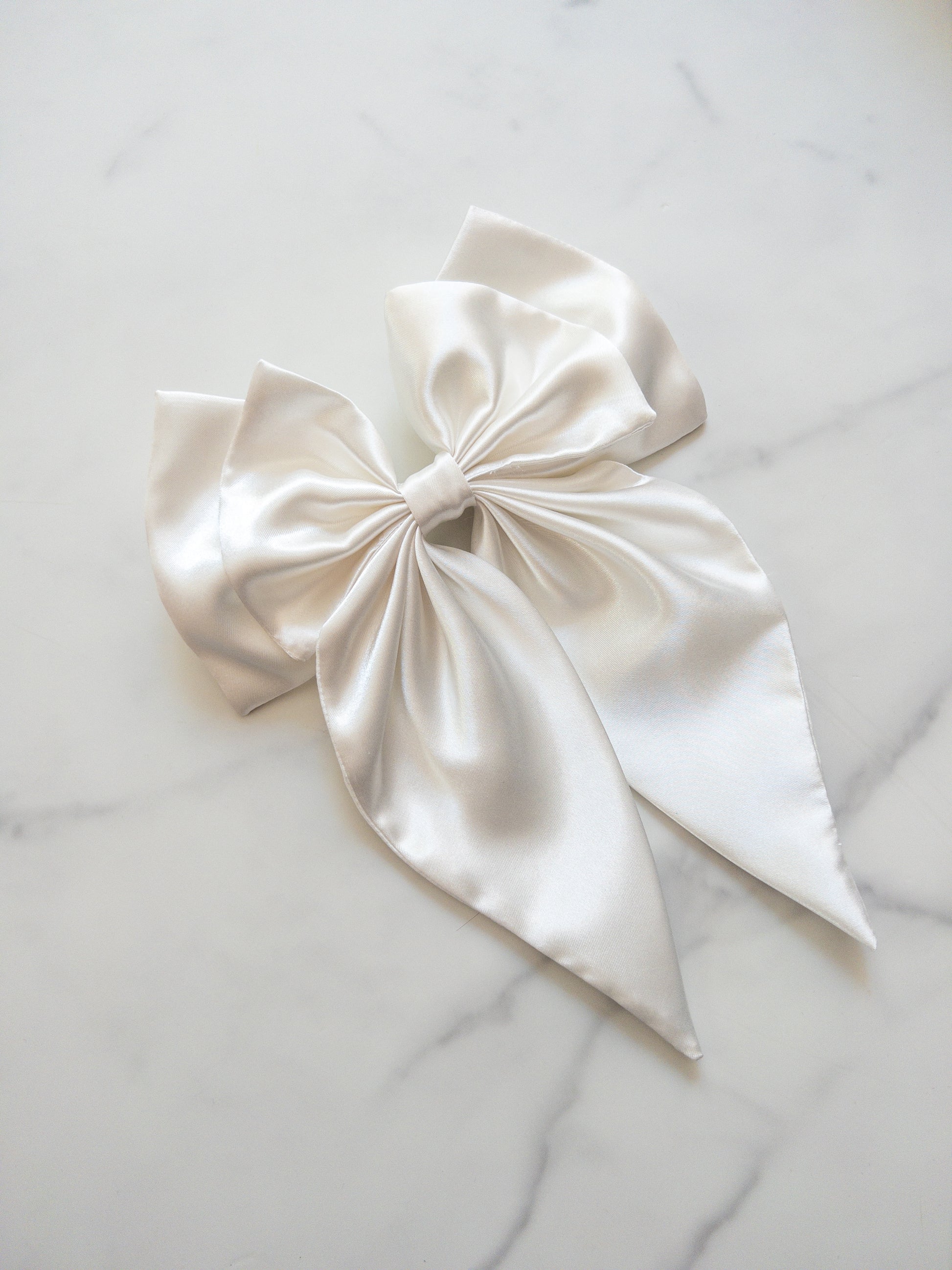 Large satin bow with 3 inch barrette on back. Bow is 8 inches wide and 10 inches long.